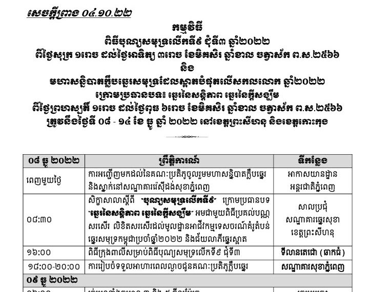 <img class="wp-image-1245 aligncenter" src="https://sihanouktourism.com/wp-content/uploads/Whole-Program-of-Sea-Festival-2022-in-Khmer1024_1-212x300.jpg" alt="" width="755" height="1068" /> <img class="wp-image-1246 aligncenter" src="https://sihanouktourism.com/wp-content/uploads/Whole-Program-of-Sea-Festival-2022-in-Khmer1024_2-212x300.jpg" alt="" width="720" height="1019" /> <img class="wp-image-1247 aligncenter" src="https://sihanouktourism.com/wp-content/uploads/Whole-Program-of-Sea-Festival-2022-in-Khmer1024_3-212x300.jpg" alt="" width="712" height="1008" />